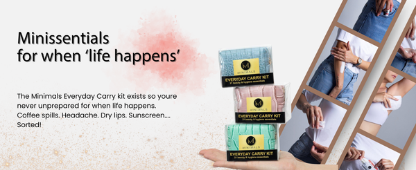 Bulky bottles, be gone! Light weight & ultra-compact, the Minimals EDC Kit is designed to keep your everyday essentials neatly tucked away for those "uh-oh” moments when you need them most. From spills & dry lips, to sneezes & sun protection, this 20-piece kit has you covered!