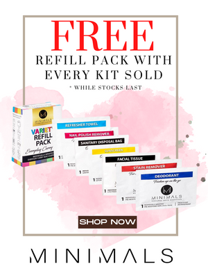 Bulky bottles, be gone! Light weight & ultra-compact, the Minimals EDC Kit is designed to keep your everyday essentials neatly tucked away for those "uh-oh” moments when you need them most. From spills & dry lips, to sneezes & sun protection, this 20-piece kit has you covered!